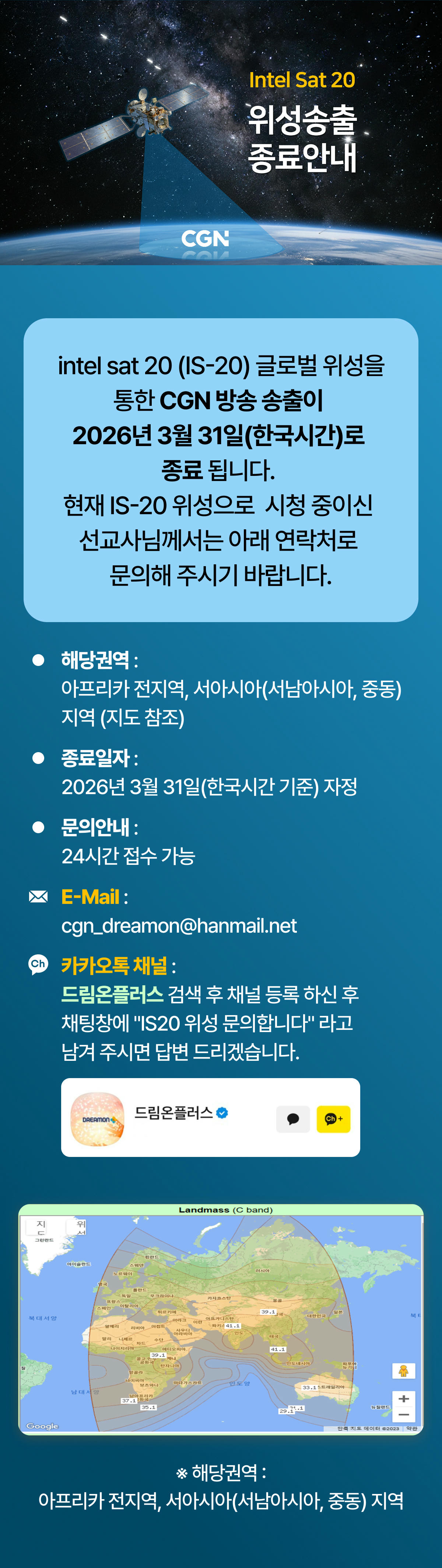 Intel Sat 20 위성송출 종료 안내2026.03.12