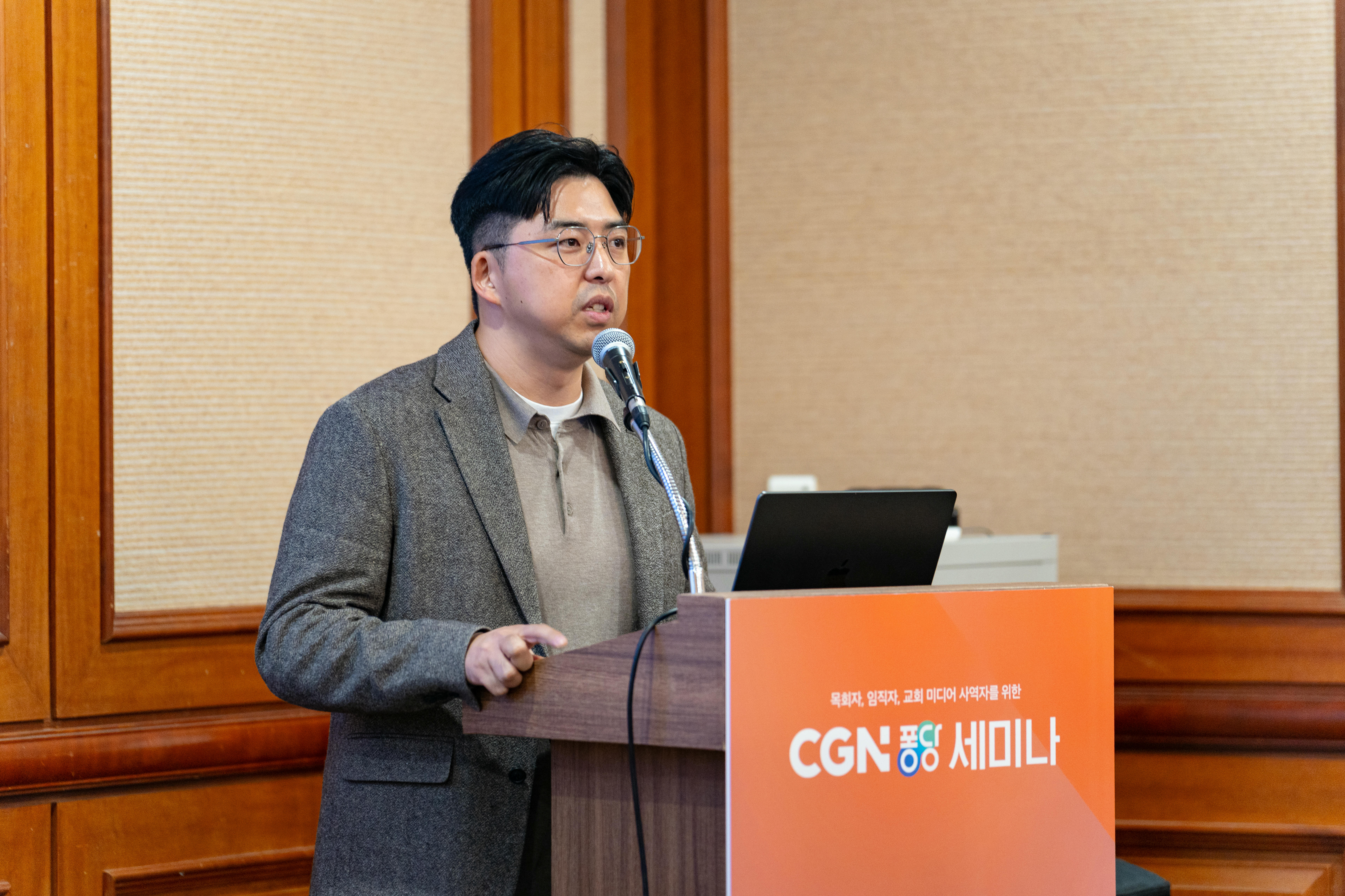 먼저 CGN 전진국 대표가 20여 년간의 CGN 사역 소개와 함께 대구 경북 지역 목회자들에게 환영사를 건넸다. 전 대표는 환영사에서 “고린도전서에 나와 있듯 그 옛날 바울도 맞춤전도를 강조했다. 우리도 시대적 요구에 맞춰 AI를 활용해 목회에 유용하게 활용해야한다. 오늘 세미나가 대구·경북지역 목회자들에게 새로운 도전이 되길 바란다”고 전했다.