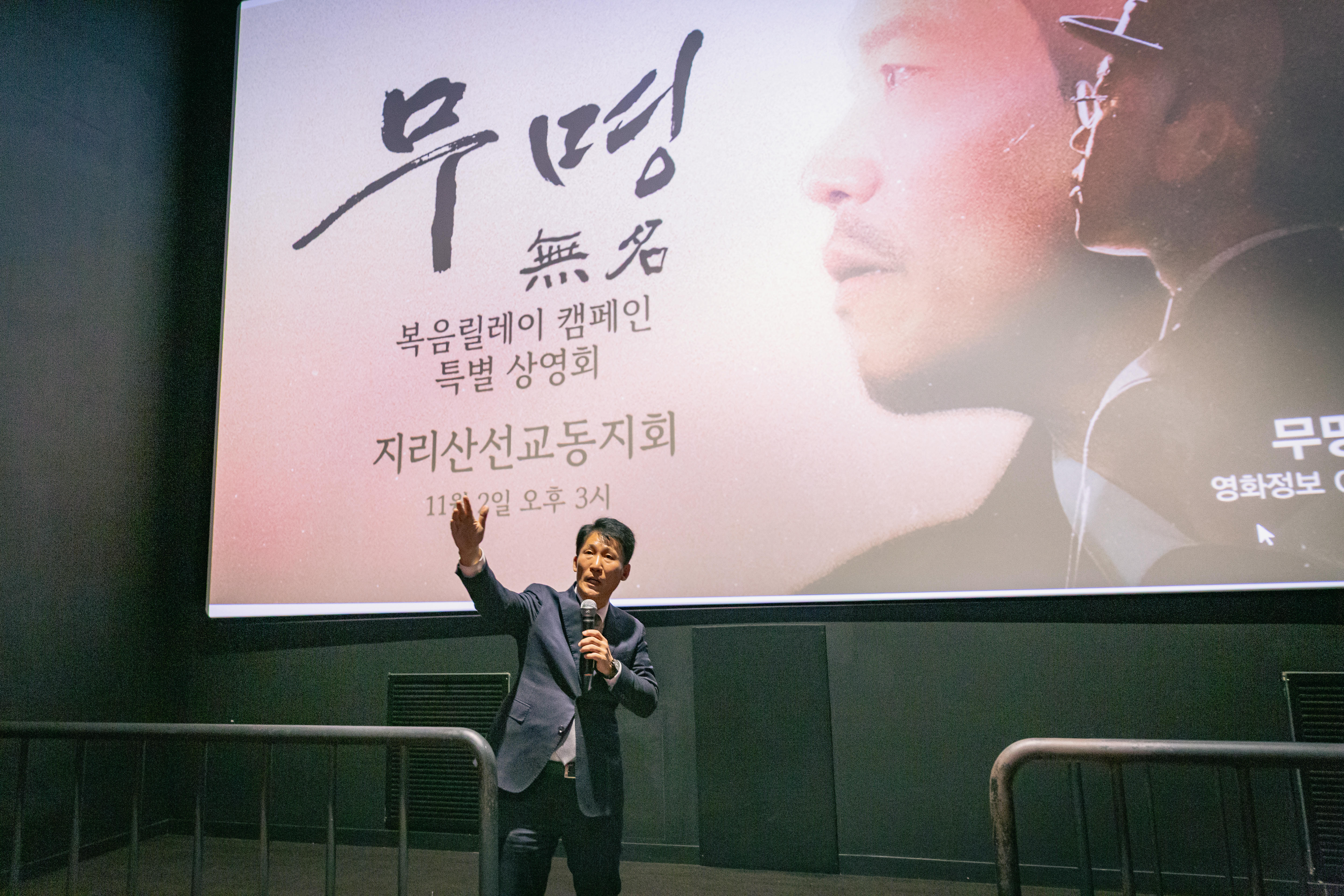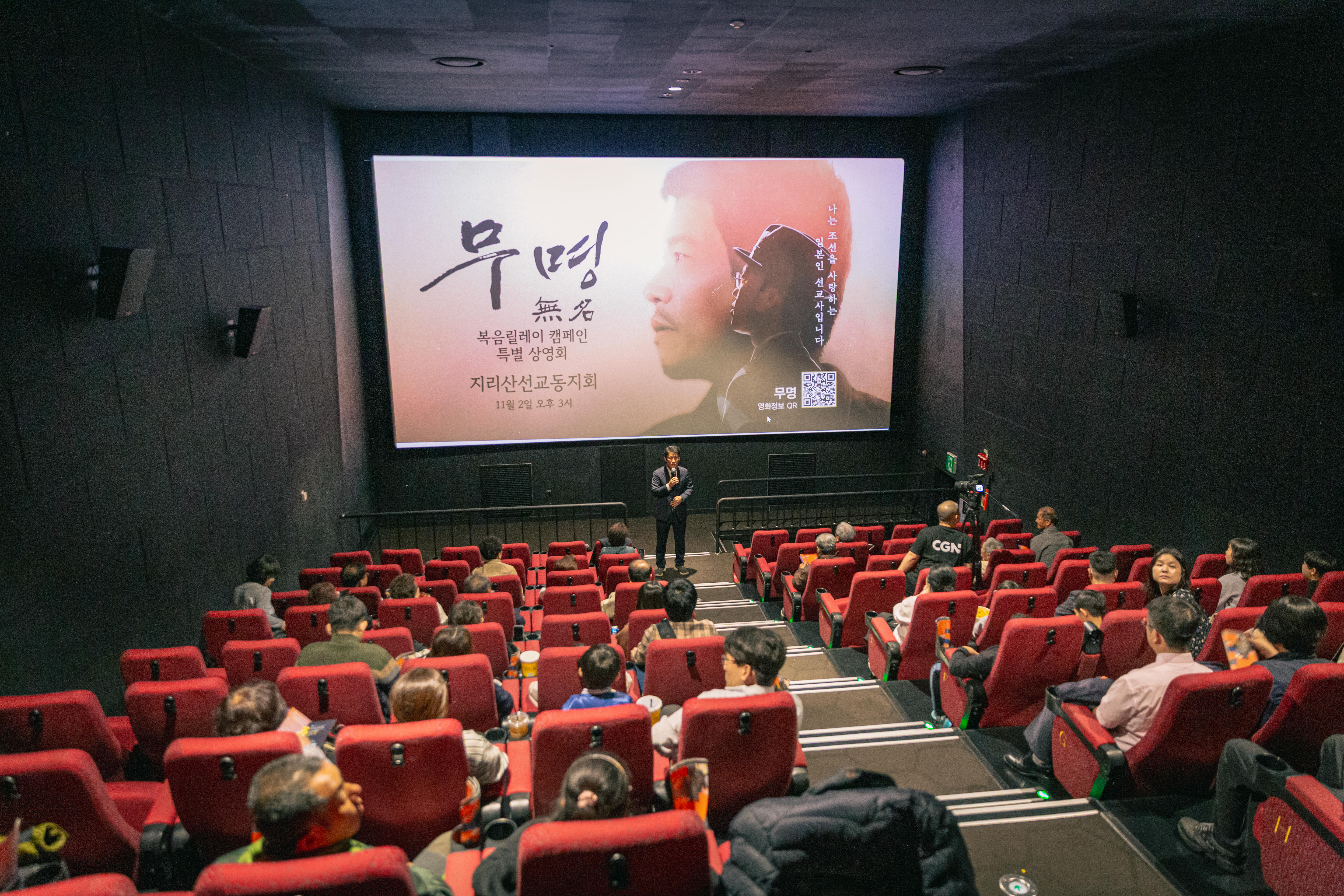글로벌 선교 미디어 CGN이 서부경남지역 미자립교회 목회자 및 성도들을 위해 영화 ‘무명(無名)’의 무료 상영회를 열었다. 지난 11월 2일 진주 롯데시네마에서 진행됐으며, 서부경남지역 미자립교회 18개에서 183명이 참석했다.