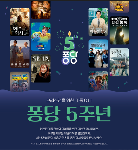 지난 5년 간 퐁당에서 가장 인기 있었던 콘텐츠를 분석한 결과, 말씀, 어린이, 영화, 간증 등 다양한 장르가 고르게 사랑받았다.